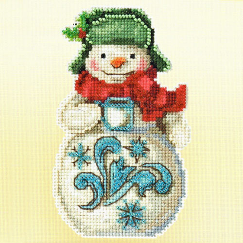Snowman with Holly is one of a series of counted cross stitch and beading kits designed by Jim Shore..